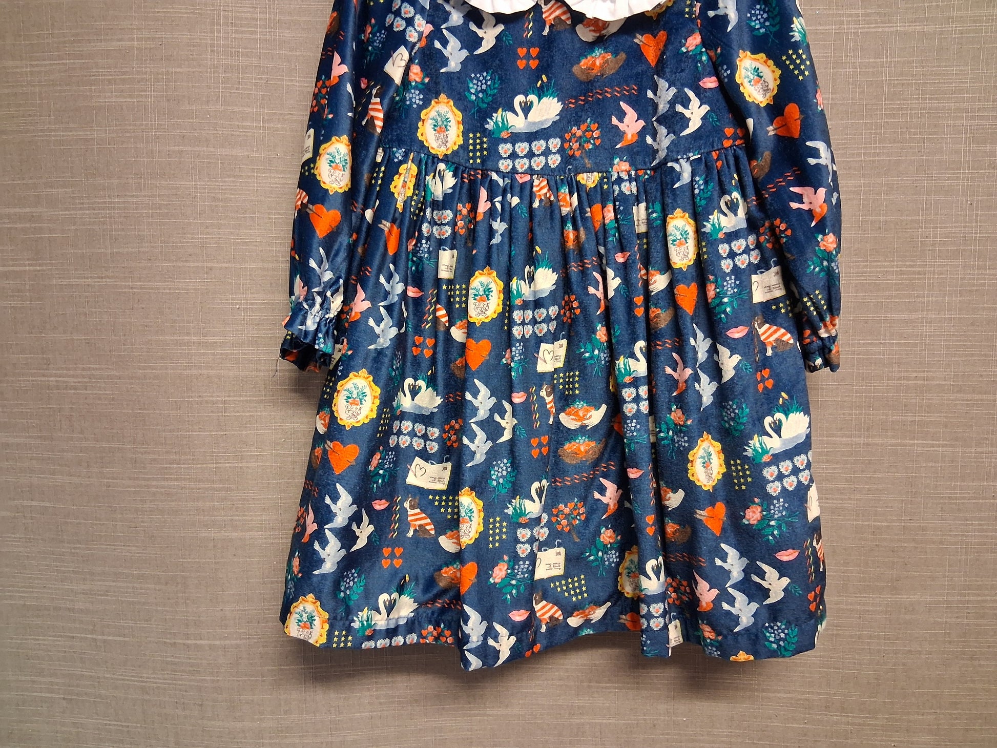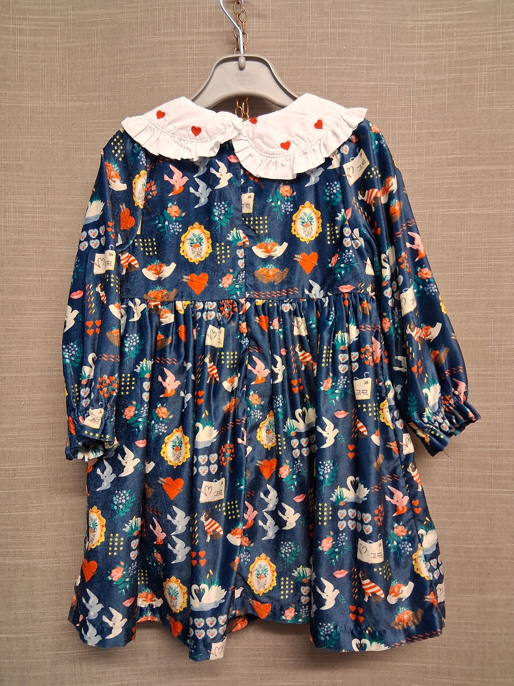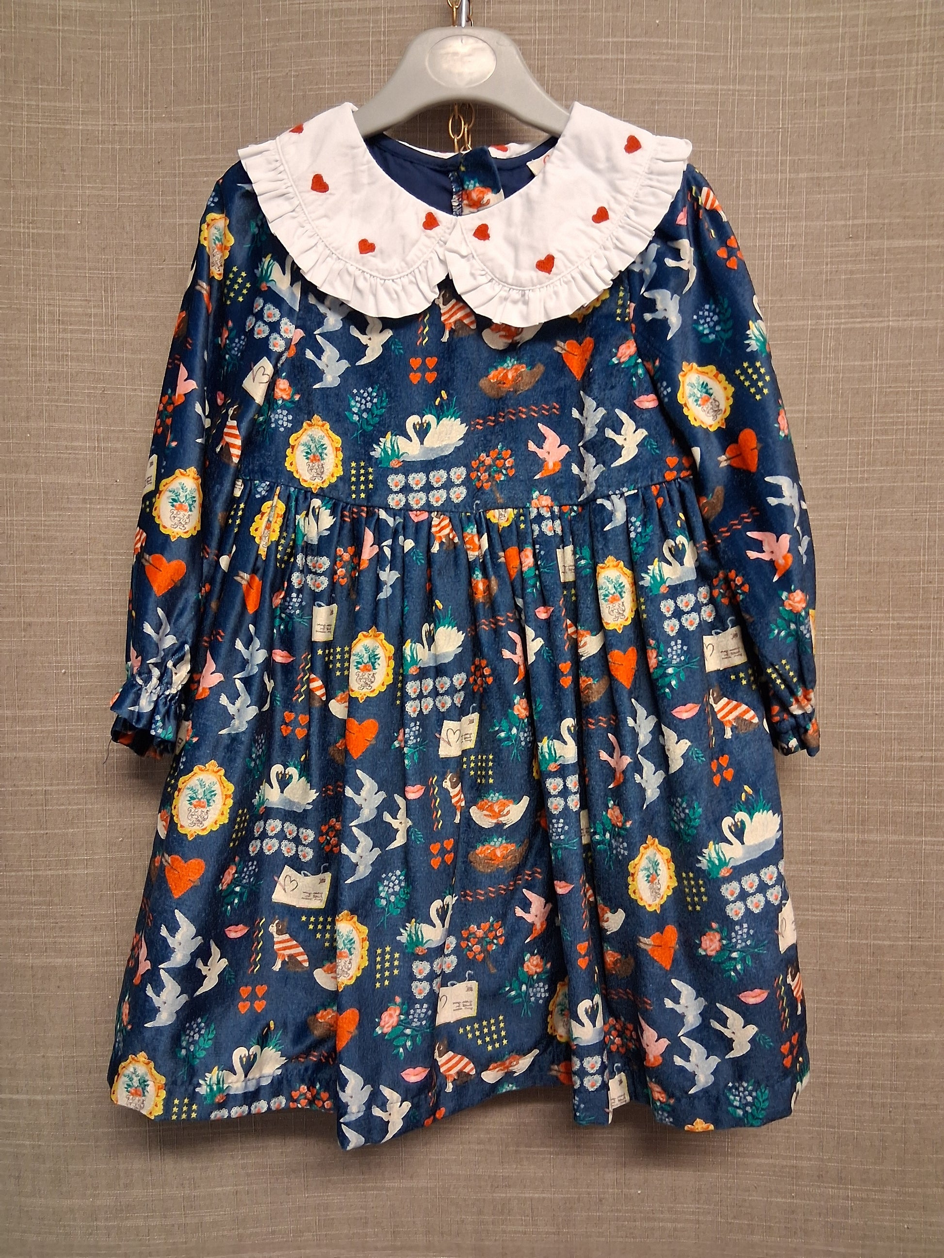Cath Kids Cath Kidston Velour Long Sleeve Blue Dress Age 2-3 Years Peter Pan Collar Cute Print