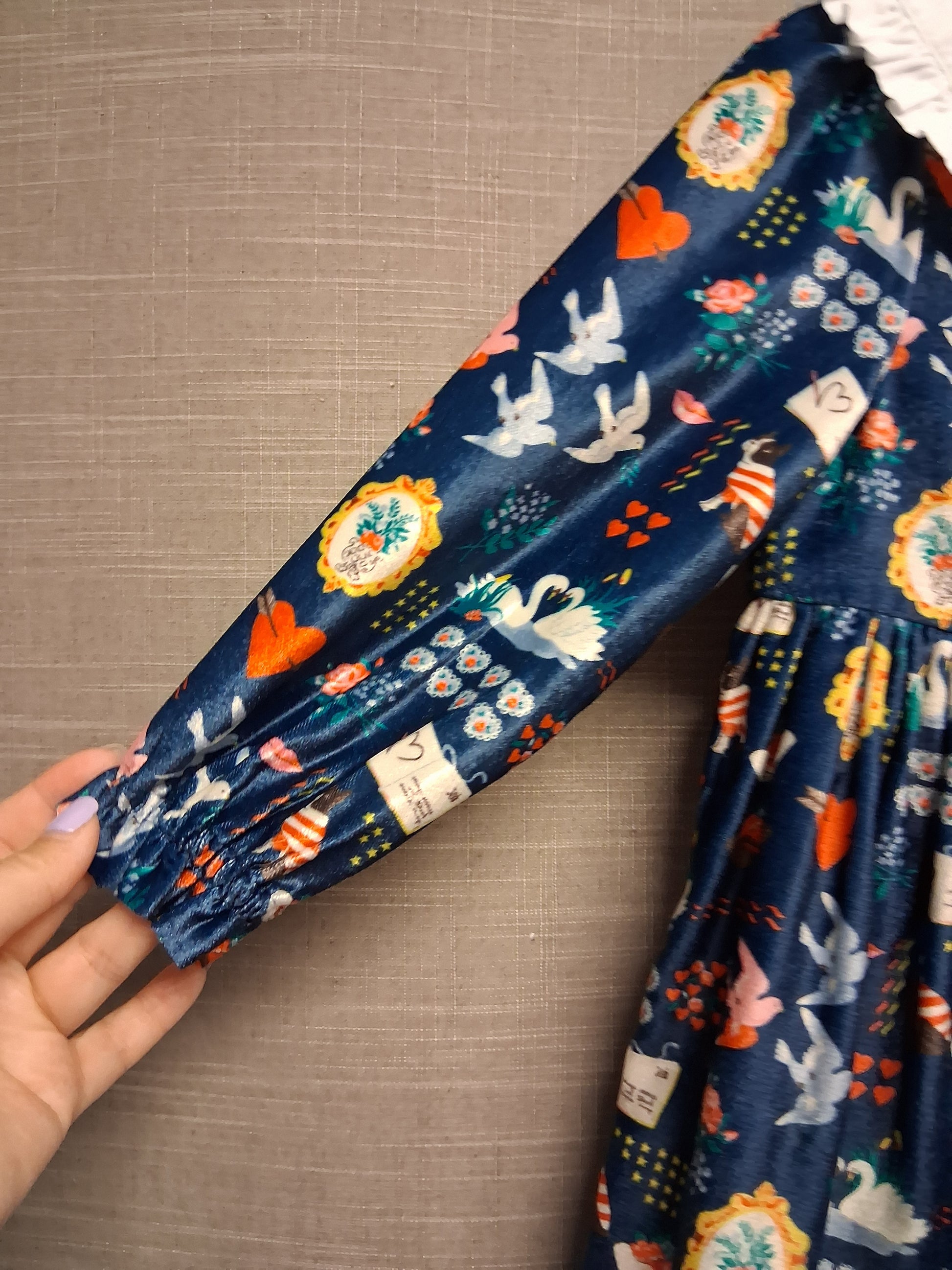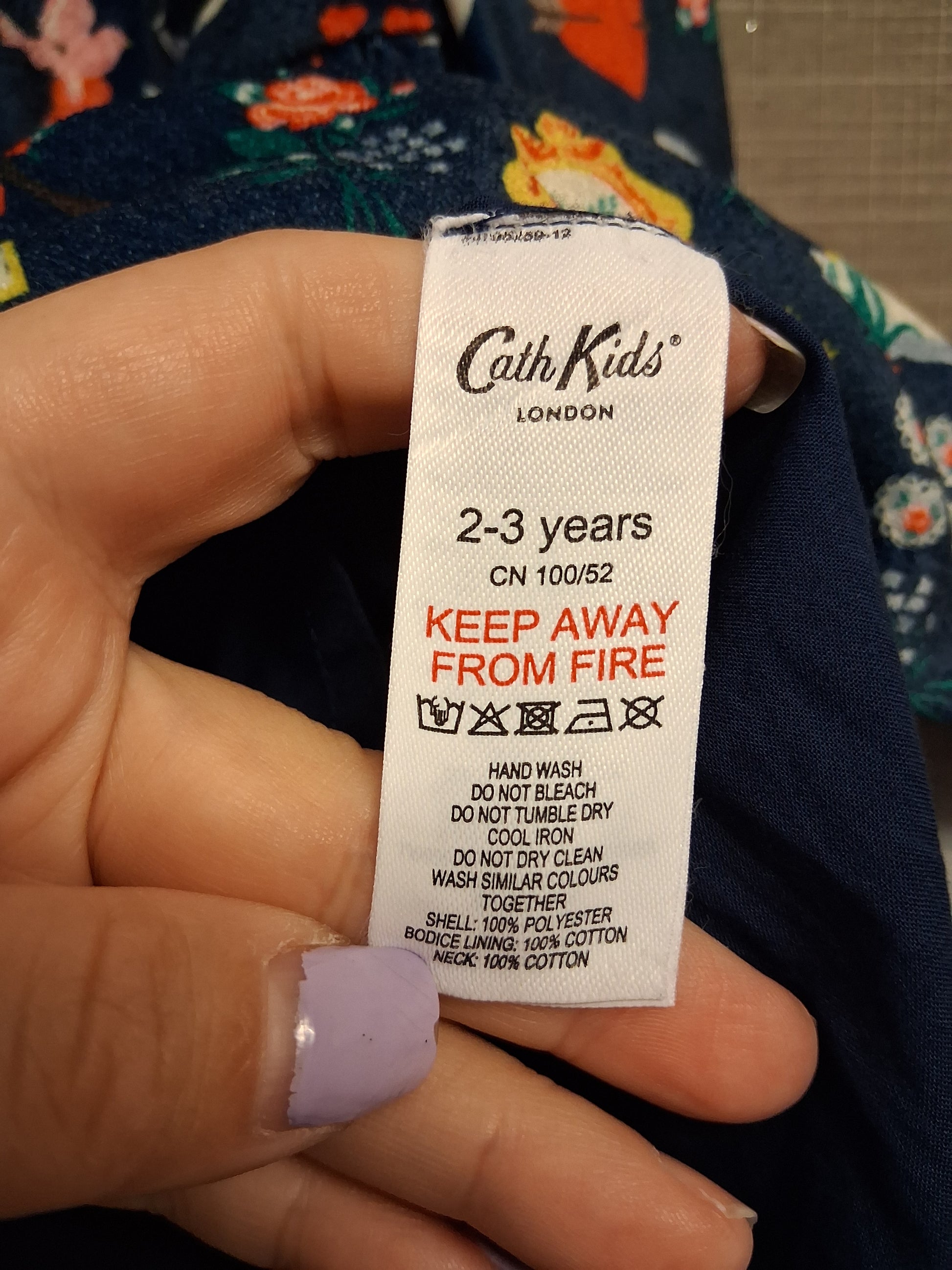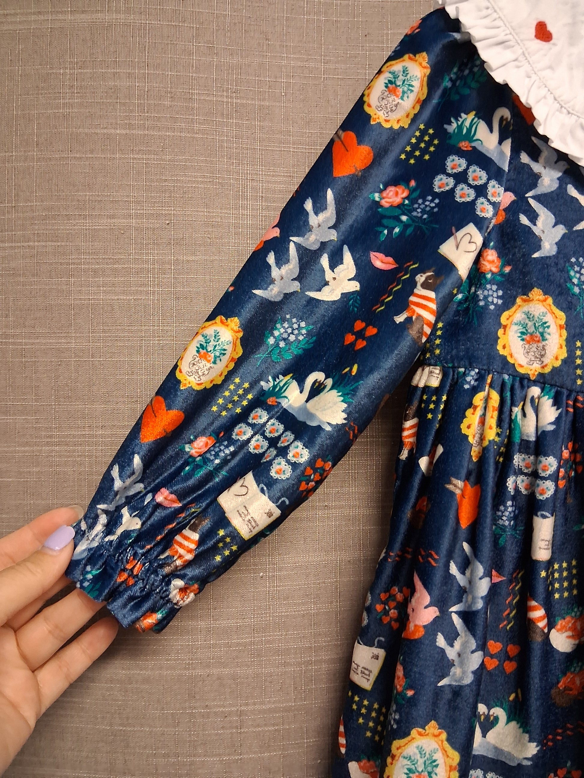 Cath Kids Cath Kidston Velour Long Sleeve Blue Dress Age 2-3 Years Peter Pan Collar Cute Print