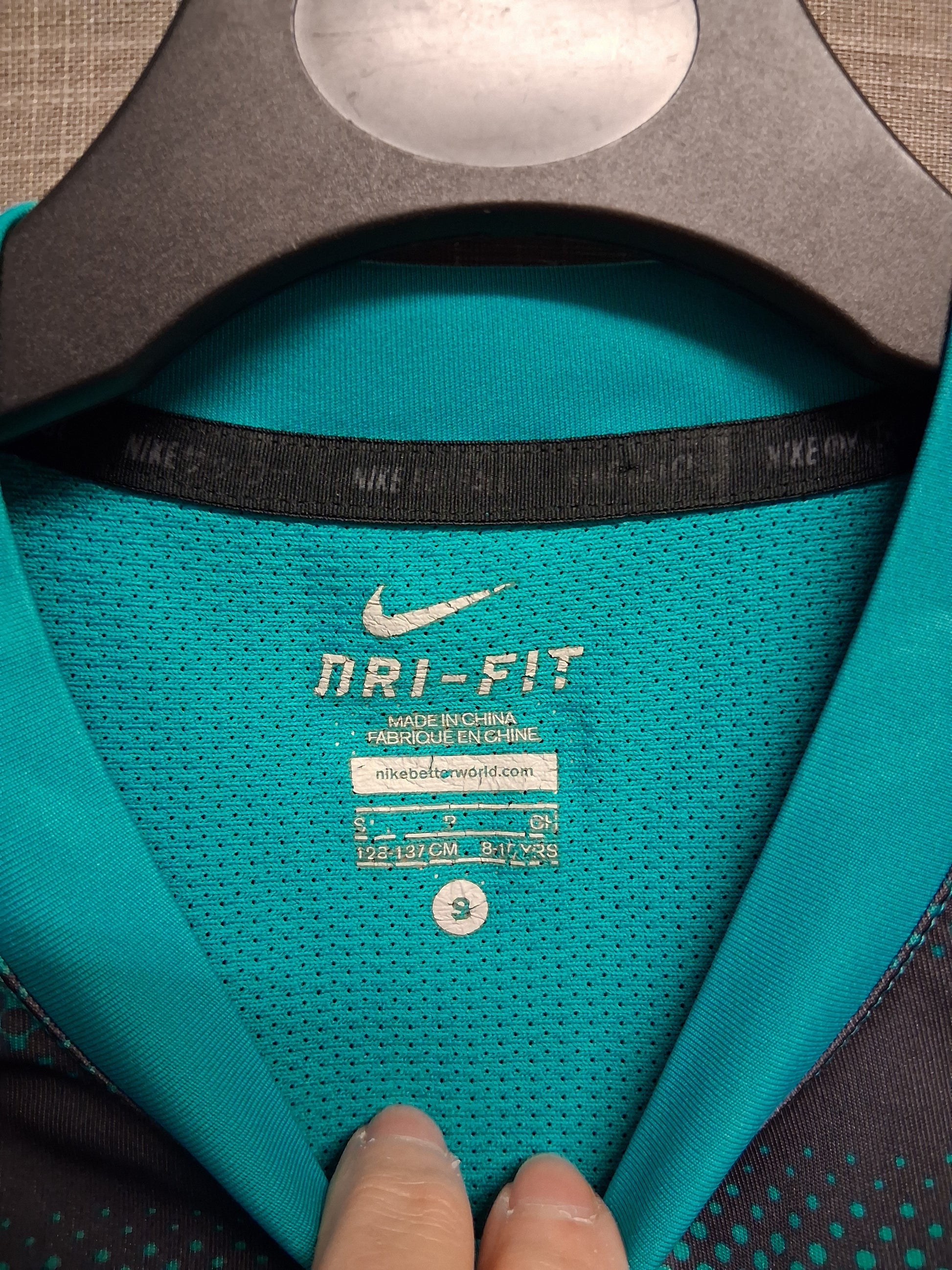 Nike Dri Fit Short Sleeve T-Shirt Teal Green Large Nike Tick Age 8-10 years
